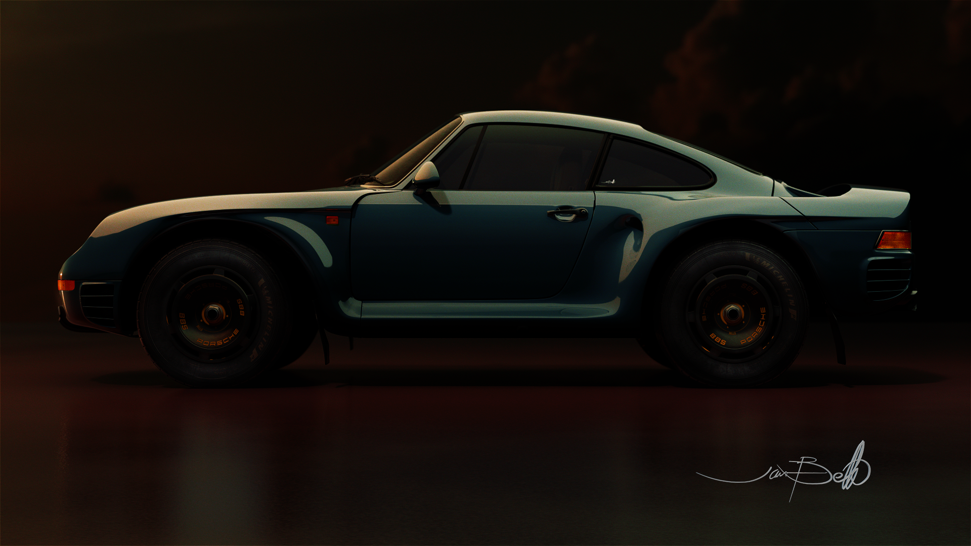 This is a personal project that is inspired by a Porsche 959 Paris Dakar. The idea is to have a luxury sports vehicle that has comfort and poise while driving through the tough streets of urban cities. In keeping a design aesthetic of the 80’s, the front and rear fenders were extended to fit the larger new wheels with center locking hubs. To protect the chassis a front skid plate and strong rear diffuser were added.